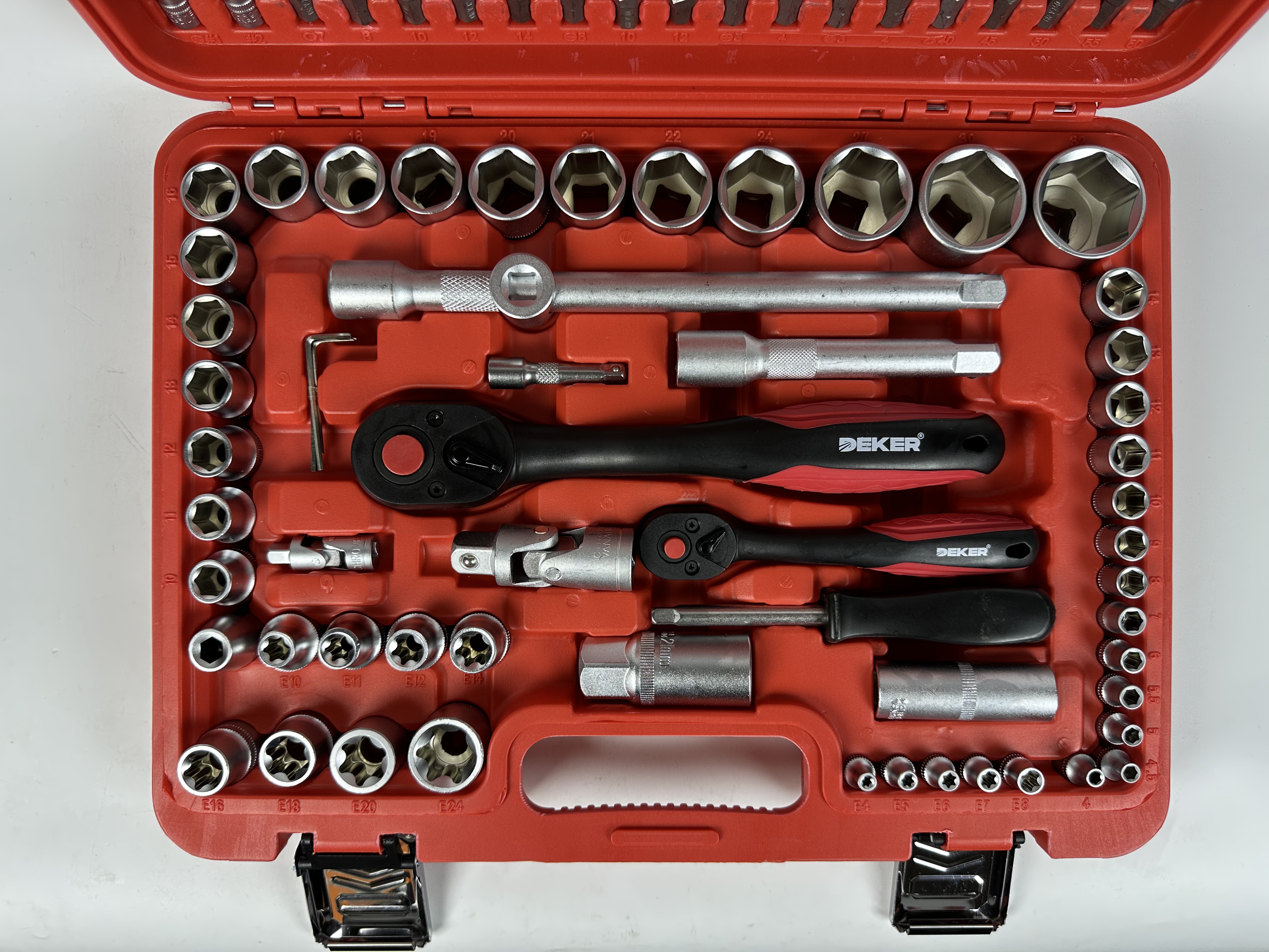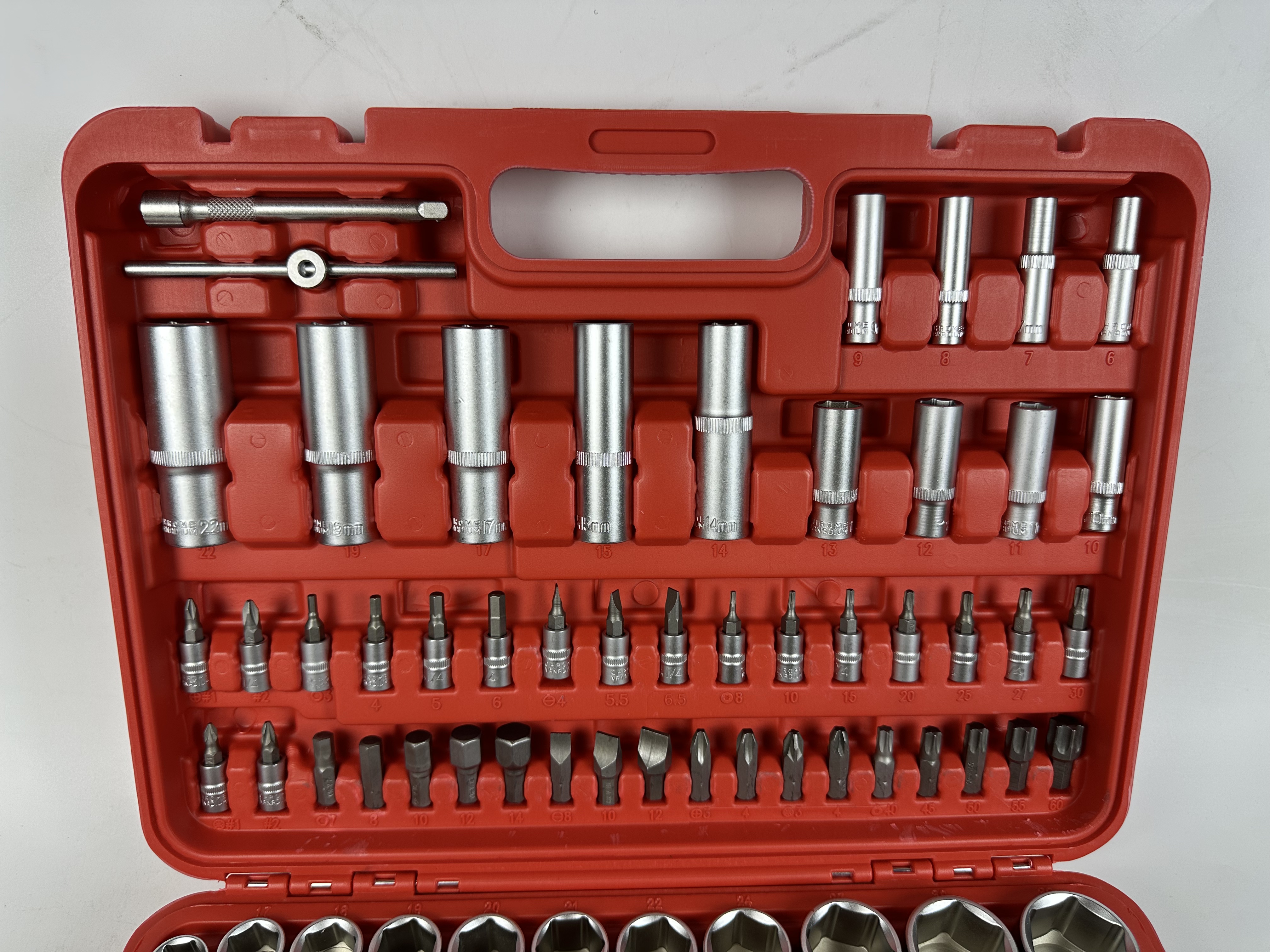 Casa » Produtos » Ferramentas de reparo automático » Conjunto de soquete » 108 peças domésticas 1/4 '1/2' conjunto de chave de catraca