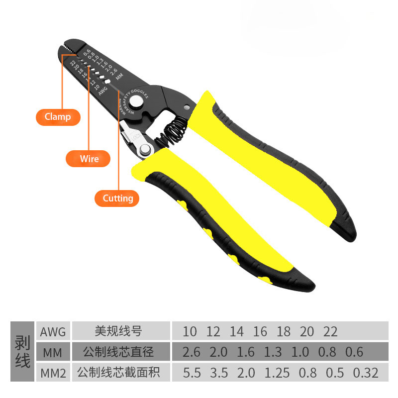 Descasque fios (suporta tamanhos de 0,6 a 2,6 mm de diâmetro / 10 a 20 AWG)