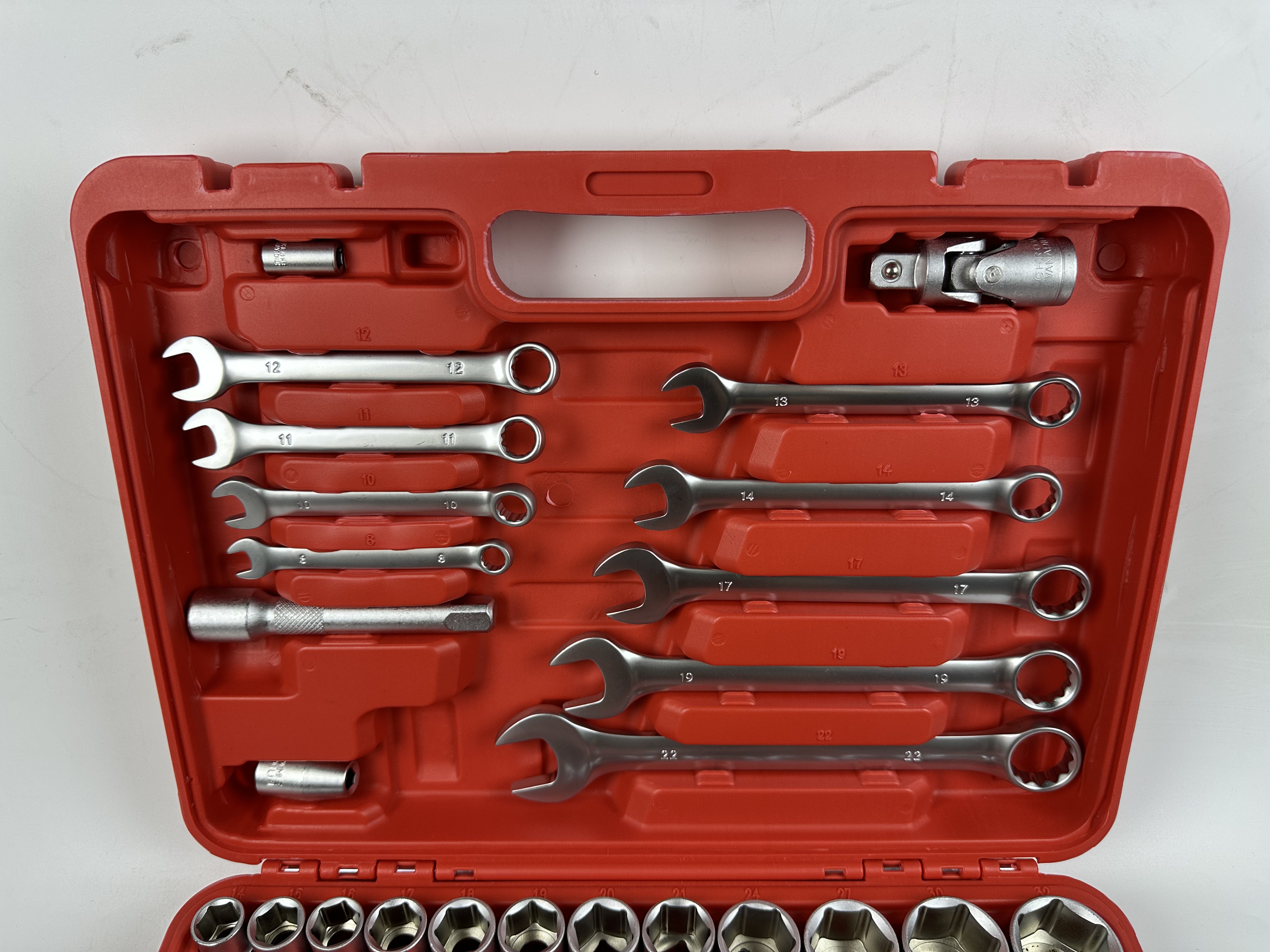 Chaves de catraca de combinação 22pcs definidas com os tamanhos: 6-7-8-8-9-10-11-12-13-14-15-16-17-18-19-20-21-22-23-24-25-27-30-32mm. A partir de 2009, com 13 anos de crescimento, Suzhou Newstar Hardware Co.,Ltd. é comprometido a ser muito confiável ...