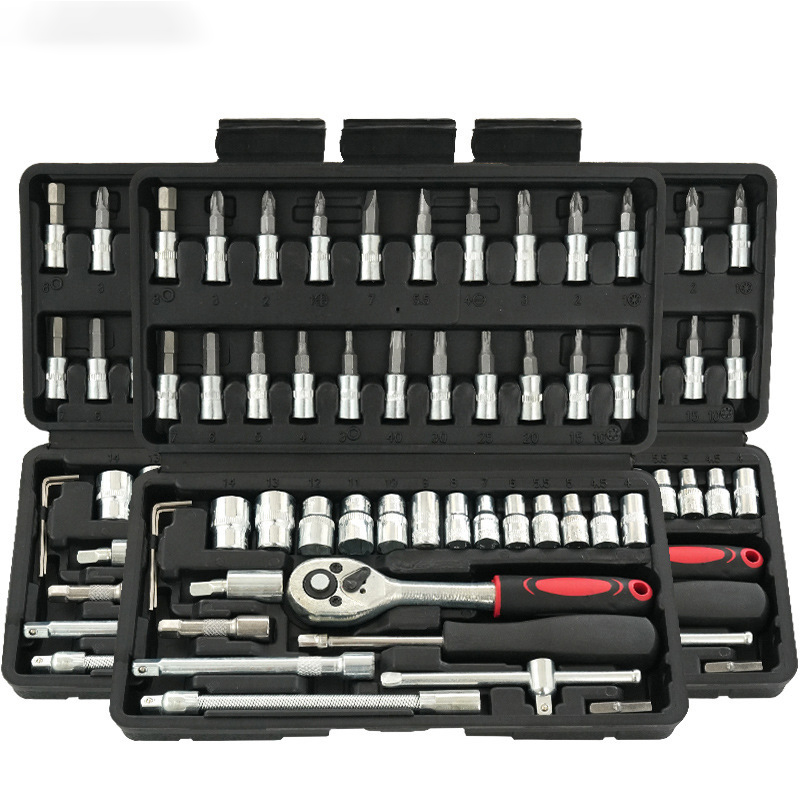 Inclui soquetes 1/4 'e 1/2 ', uma variedade de chaves, chaves de fenda, alicates e outras ferramentas de reparo essenciais para cobrir uma ampla gama de necessidades de manutenção.