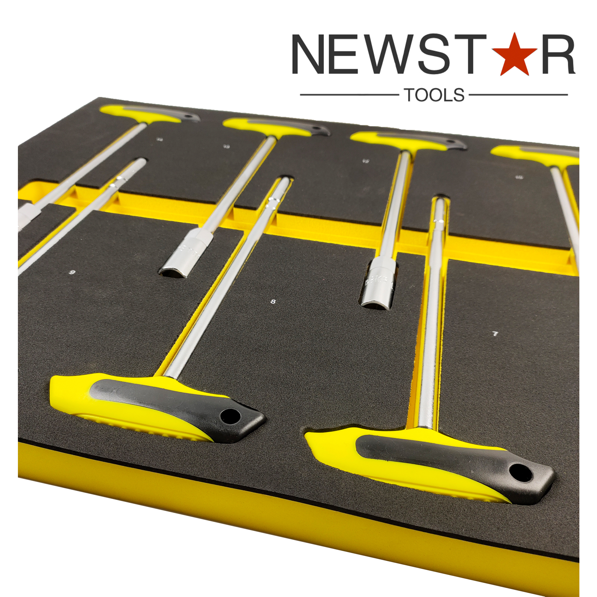 O interior possui um design de compartimento modular, com cada ferramenta com uma posição fixa para impedir o movimento e a colisão. Esse design facilita o armazenamento e a recuperação fácil. O design modular também permite a identificação rápida das ferramentas ausentes, garantindo que nada seja deixado de fora quando em uso.